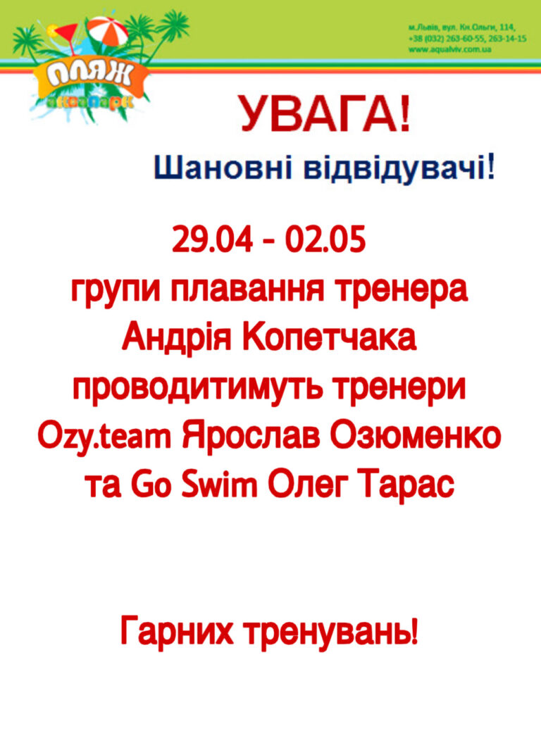 Запрошуємо у ЄДИНИЙ Аквапарк «ПЛЯЖ» у Львові!