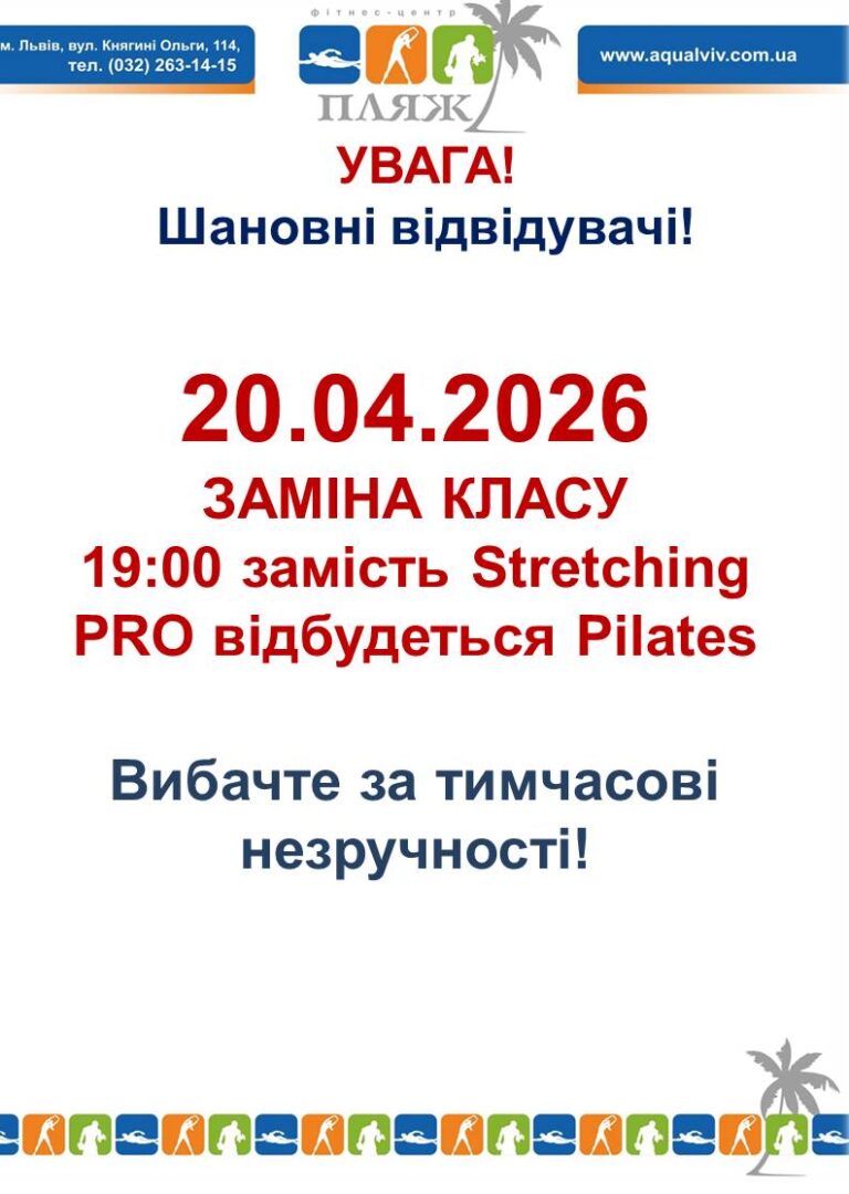 Якщо Ви досі у пошуках зручної локації, де можна займатись плаванням/фітнесом, то запрошуємо у аквапарк «ПЛЯЖ»