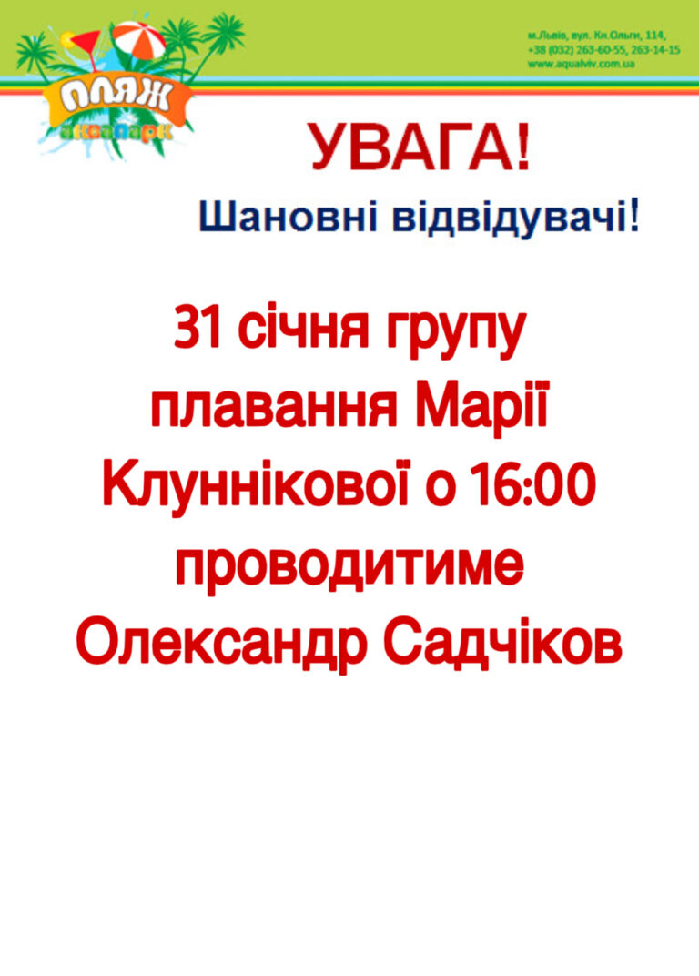 Запрошуємо у ЄДИНИЙ Аквапарк «ПЛЯЖ» у Львові!