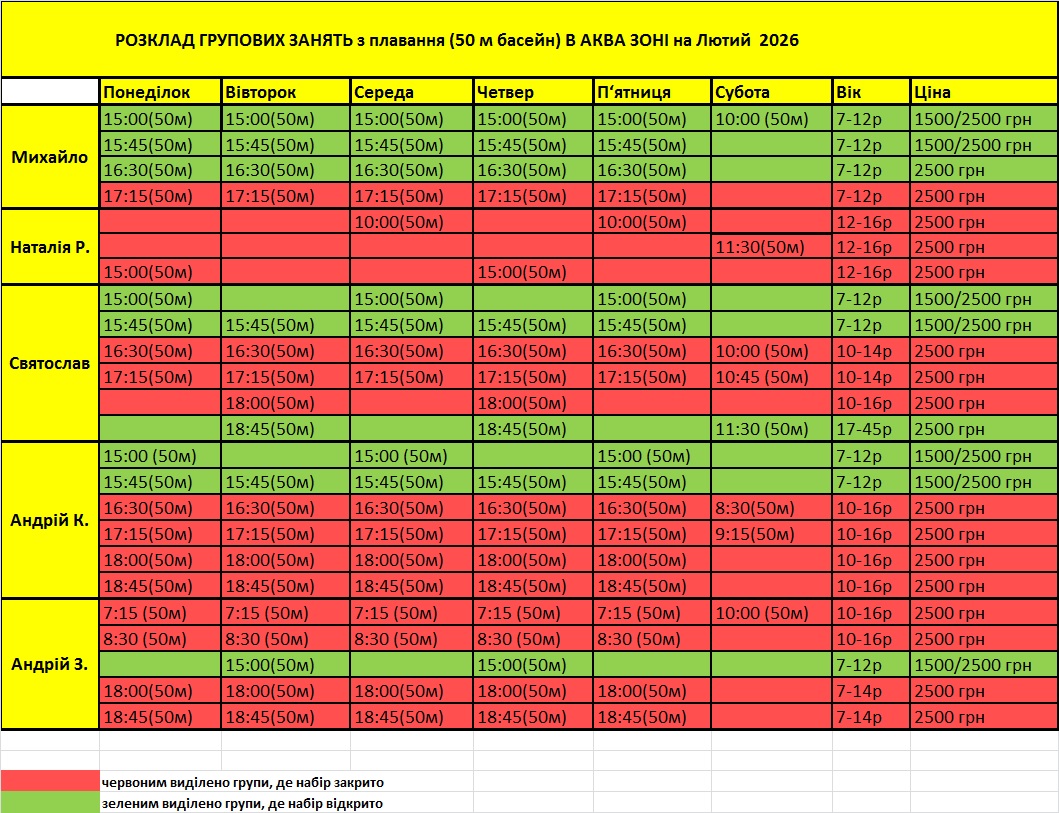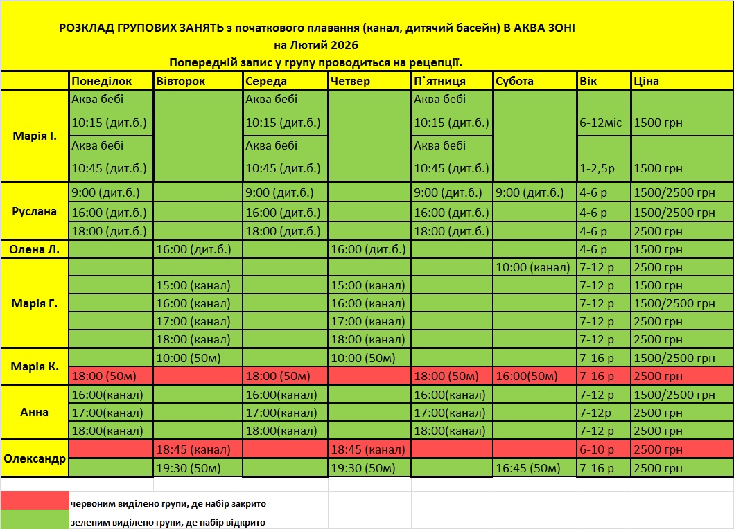Увага! Обов'язково уточнюйте на рецепції Аквапарку про набір у групи плавання!