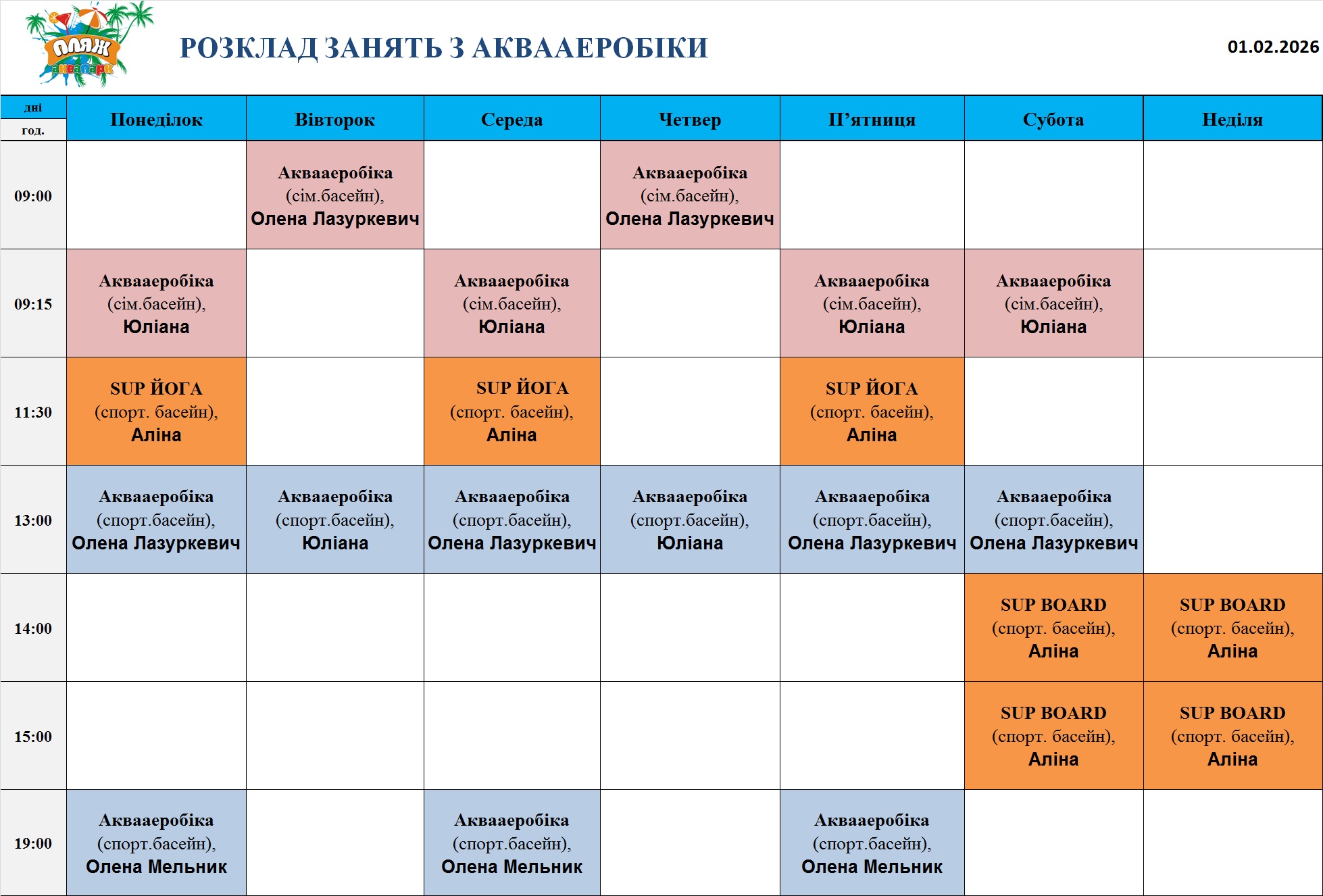 Розклади групових занять!