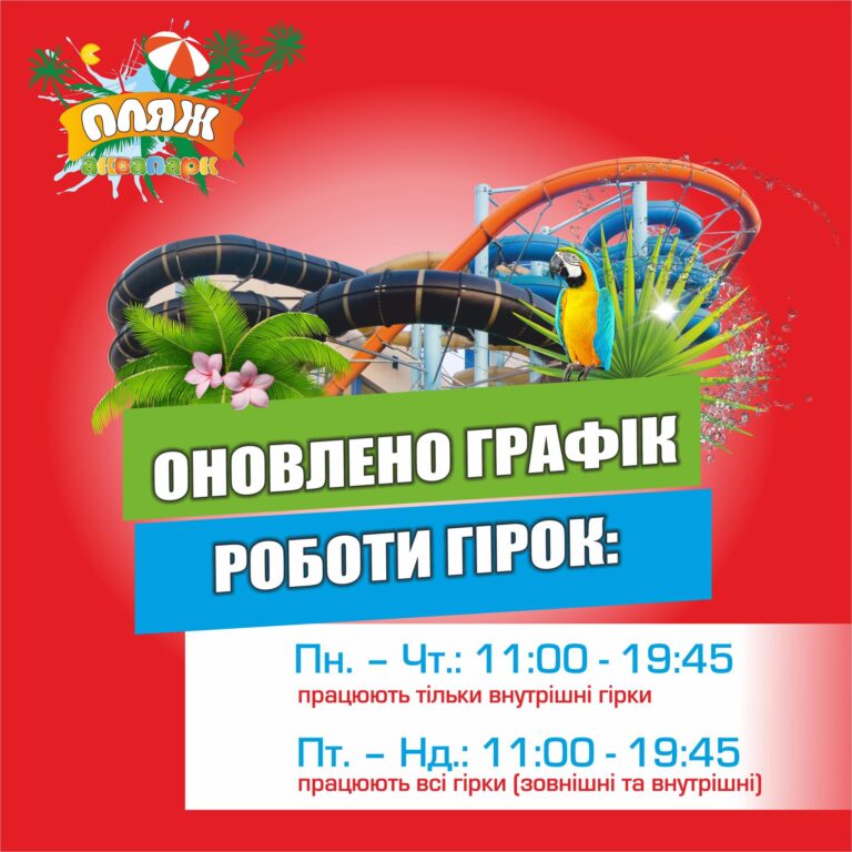 Новини Оновлено ГРАФІК роботи гірок! Детальніше » 16.01.2026 Новини Увага! Оголошення! Детальніше » 12.01.2026 Новини Майстер-класи для дітей у аквапарку ПЛЯЖ Детальніше » 12.01.2026 Новини Увага! Оголошення! Детальніше » 10.01.2026 Новини Оновлено графік роботи гірок Детальніше » 09.01.2026 Новини Увага! Оголошення! Детальніше » 30.12.2025 Новини Графік роботи у новорічний період! Детальніше » 29.12.2025 Новини Увага! Оголошення! Детальніше » 29.12.2025 Новини Увага! Оголошення! Детальніше » 28.12.2025 Новини Увага! Оголошення! Детальніше » 24.12.2025 Page1 Page2 Page3 Page4 Page5 Page6 Page7 Page8 Page9 Page10